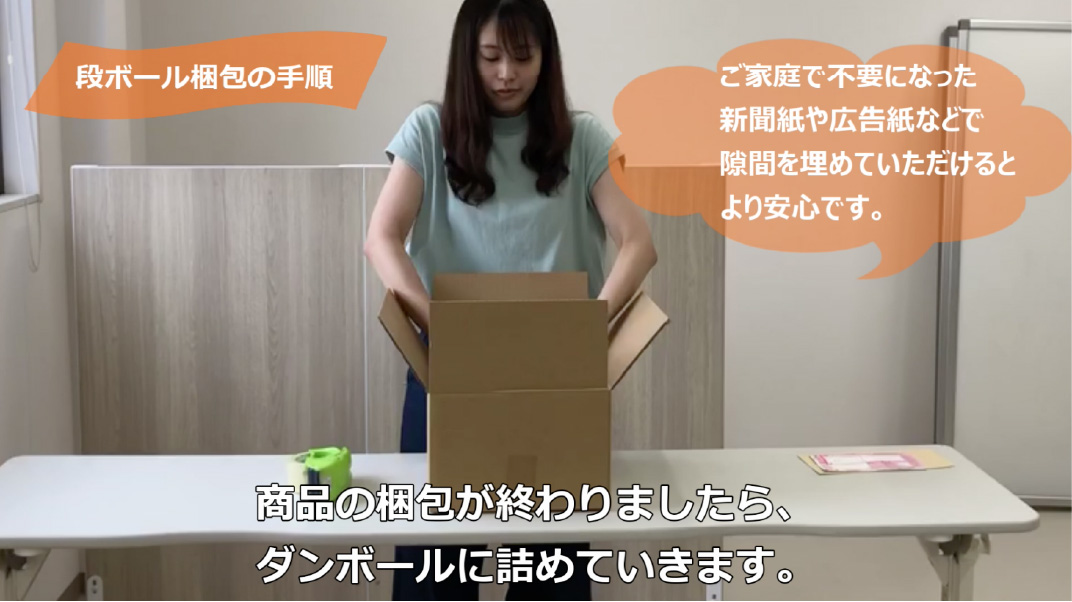 商品の梱包が終わりましたら、ダンボールに詰めていきます。
