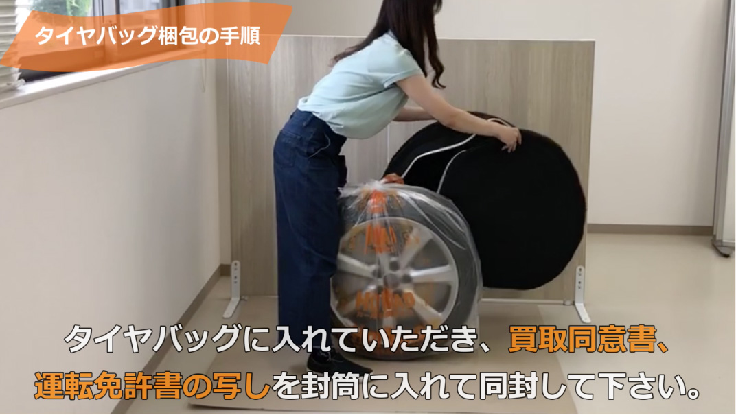 タイヤバッグに入れていただき、買取同意書、運転免許証の写しを