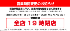 1月21日より閉店時間が19時に変わりました。