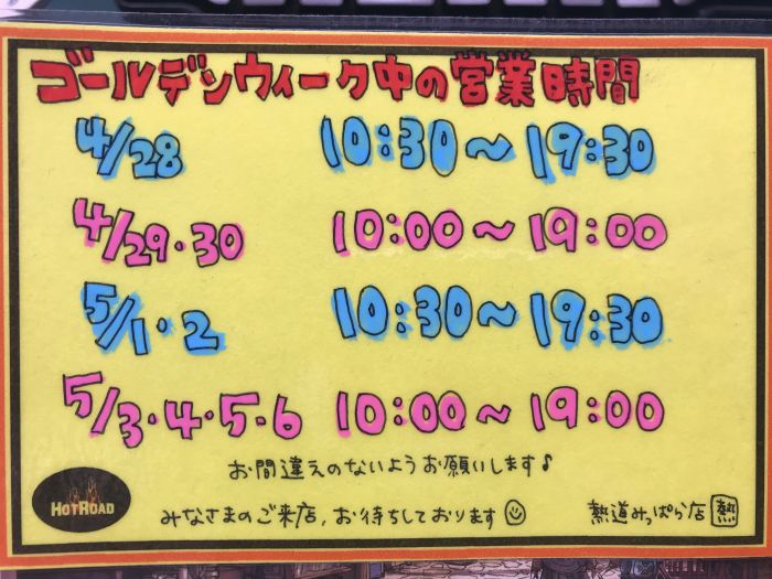みっぱら店☆GW営業してます~