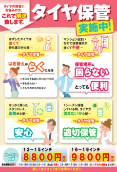 スタッドレスタイヤへの履き替え等で持ち運ぶのが面倒、マンションなどで保管場所がないなどのお悩みを解決するのが保管サービスになります!