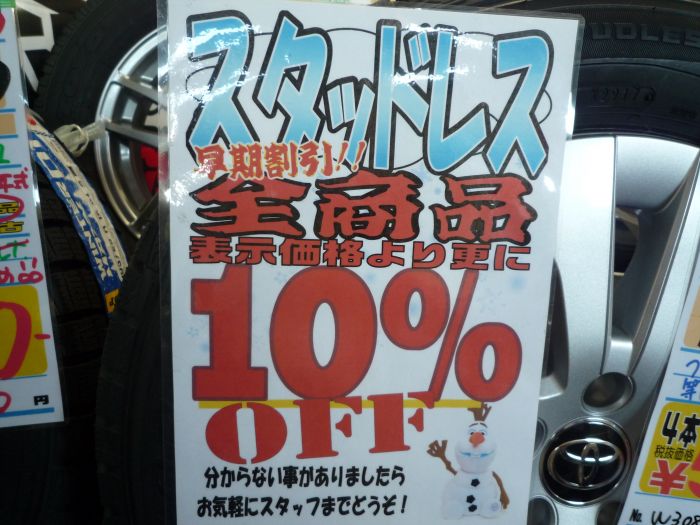 なんと、スタッドレス全商品が表示価格より更に10%OFFに!!!
