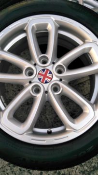 センターキャップには前オーナー様の好みでユニオンジャックのステッカーが貼ってあります。
