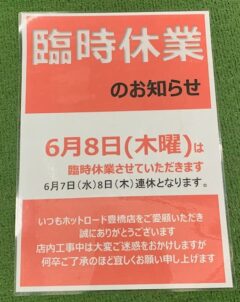 豊橋店 6月8日は臨時休業致します。