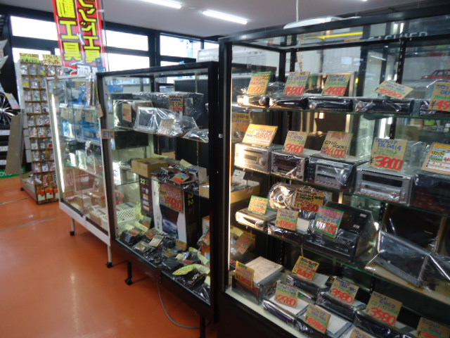 レジ近くの真ん中にナビやオーディオ、ドラレコを置きました。