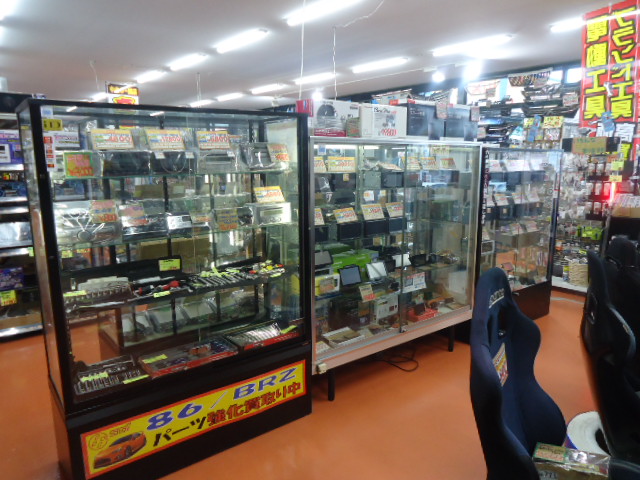 一番奥にあったダウンサスやマフラーをお店の入り口から見えるようにしました 😀