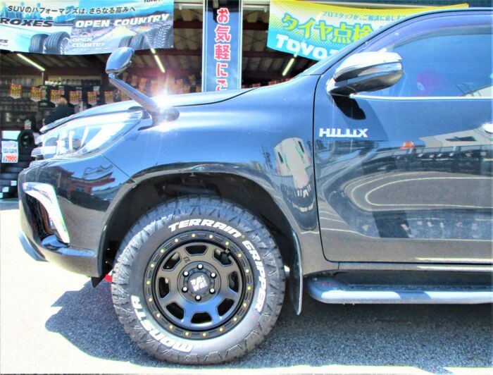 HOME > ブログ > 店舗別ブログ > スタッフブログ > 長久手店 > 長久手 ハイラックスにXTREMEーJ 17インチ MONSTA ホワイトレター !!