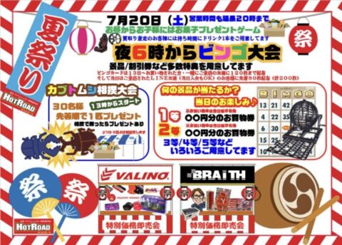 夏祭りと同時にホットロード豊田店では7月20日(土曜日)のみイベントを開催する事になりました