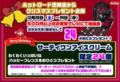 HOME > ブログ > 店舗別ブログ > イベント・キャンペーン > 豊田店 > 【豊田店】ホットロード豊田店からクリスマスプレゼント企画🎄🎅